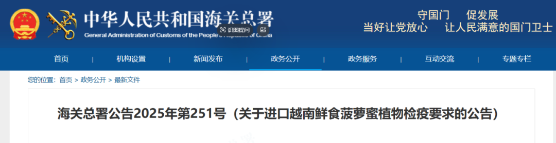 (五)《中华人民共和国海关总署与越南社会主义共和国农业与环境部关于越南鲜食菠萝蜜输华植物检疫要求议定书》。